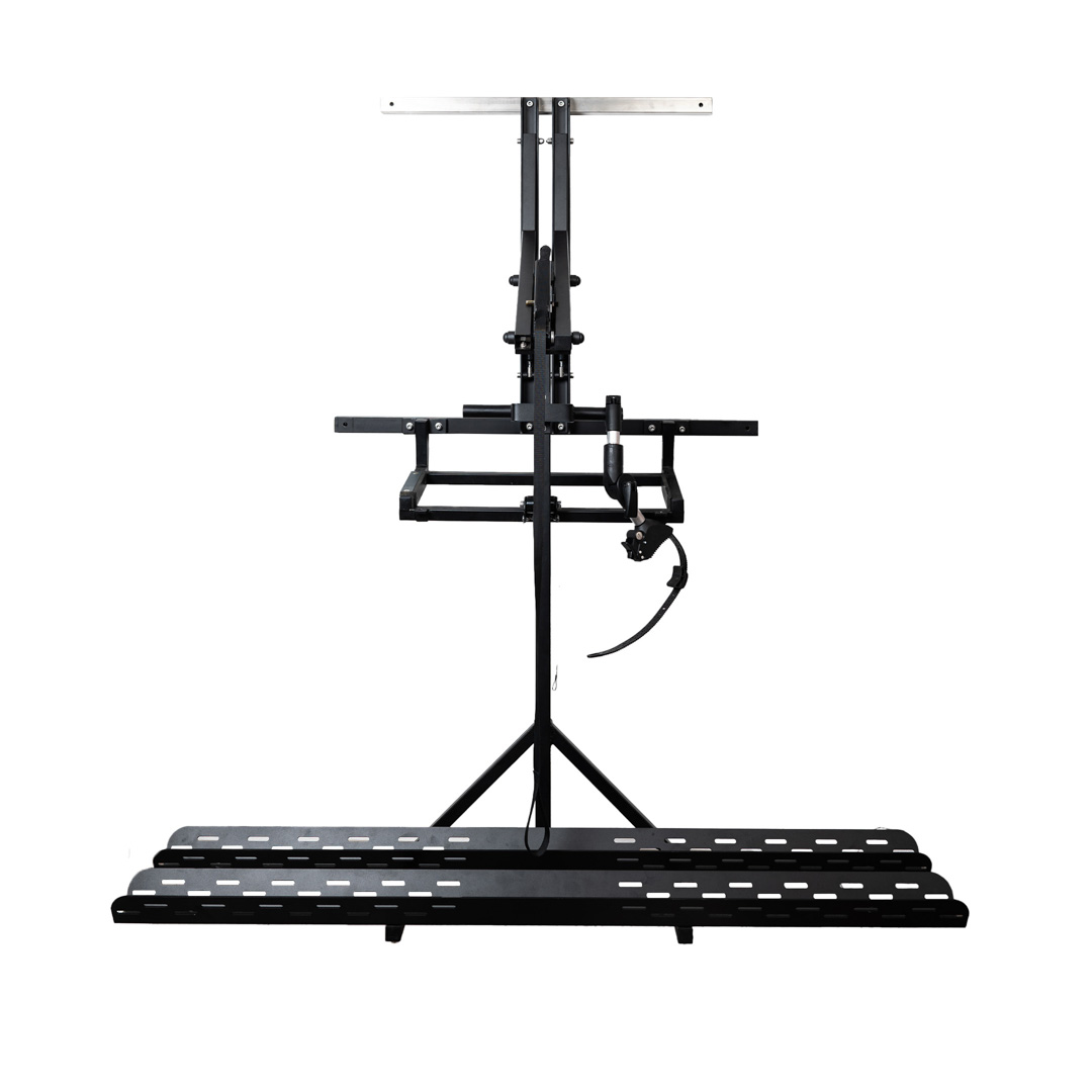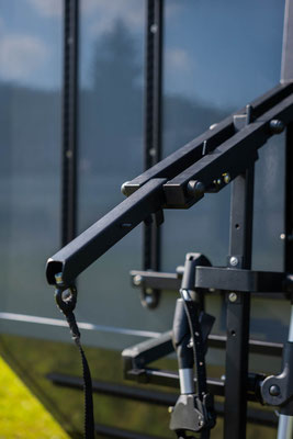 Beim Abladen muss nur leicht am Lenker gezogen werden, dann bringt das Eigengewicht des Fahrrades den Hebearm wieder nach unten und das Fahrrad kann abgenommen werden.