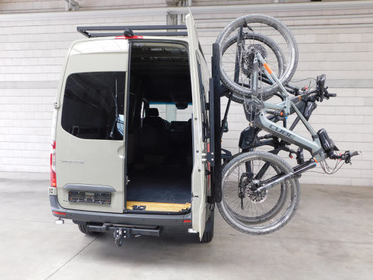 Reisen mit Fahrrädern war noch nie so komfortabel: Unser eigen entwickelter Fahrradträger mit innovativem Liftsystem erleichtert das Be- und Entladen und ist die perfekte Ergänzung für Vanlife und Wohnmobil-Abenteuer.