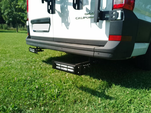 ACHTUNG: Wenn durch den Fahrradträger oder die aufgenommene Ladung die Fahrzeugrückleuchten oder das Kennzeichen teilweise oder vollständig verdeckt werden, muss die Fahrzeugbeleuchtung und/oder das KFZ-Kennzeichen wiederholt werden.